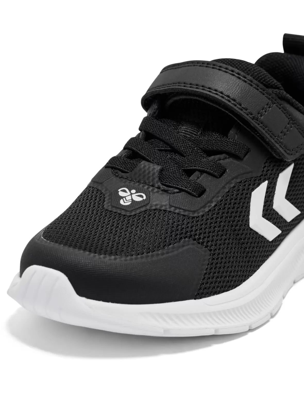 Den fleksible og stødabsorberende sål giver en behagelig gang, mens velcrolukningen gør skoen nem at tage af og på og sikrer en god pasform. De klassiske Hummel-vinkler på siden tilfører et moderne og sporty udtryk, og den sorte farve gør skoen nem at matche med resten af garderoben.