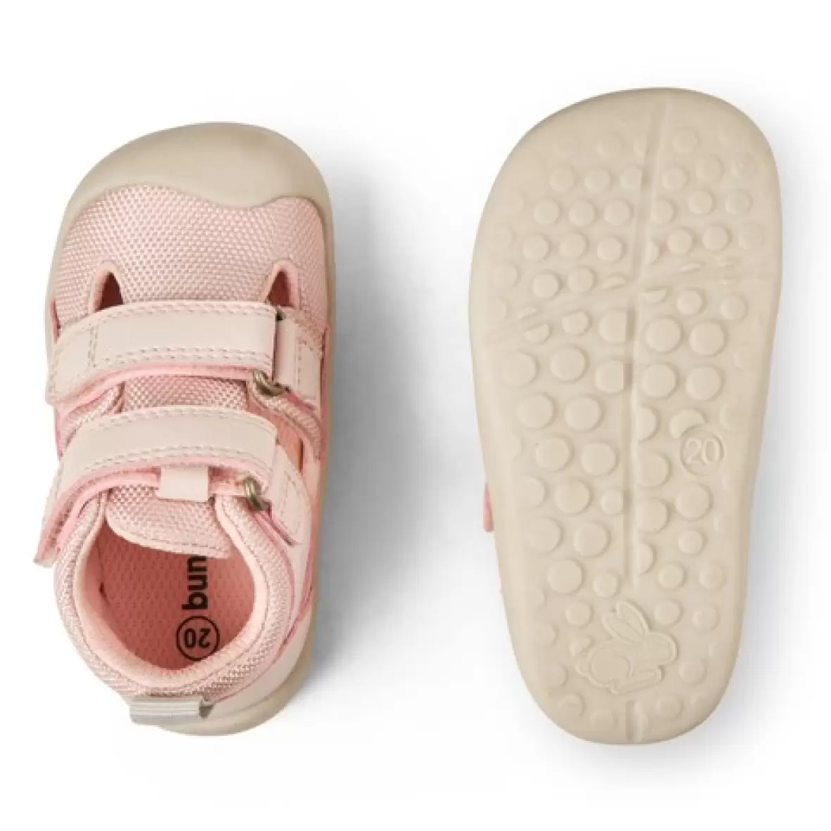 Skoen er fremstillet i en kombination af tekstil og læder, som giver god åndbarhed og komfort hele dagen. Den lukkede tå beskytter små tæer under leg, mens de åbne detaljer i designet sikrer ventilation. De to praktiske velcrolukninger gør det nemt at tage skoen af og på og giver mulighed for en individuel tilpasning.