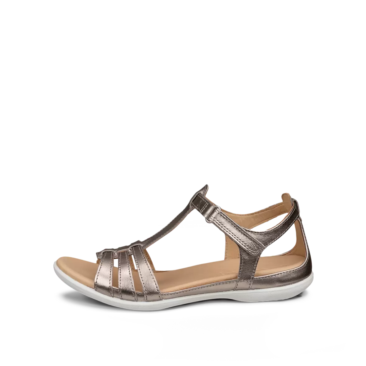 De fine, smalle stropper og den klassiske T-rem skaber et let og elegant look, mens den justerbare lukning sikrer en god og personlig pasform. Konstruktionen giver samtidig god støtte omkring foden, hvilket gør sandalen behagelig at have på hele dagen.