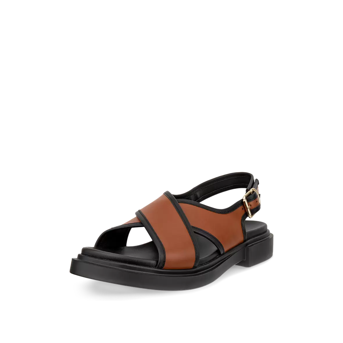 Sandalen er fremstillet i ECCO’s eget kvalitetslæder, hvilket giver et blødt og luksuriøst look samt god holdbarhed. De krydsede remme over foden skaber et elegant design, mens den justerbare hælrem sikrer en personlig og stabil pasform.