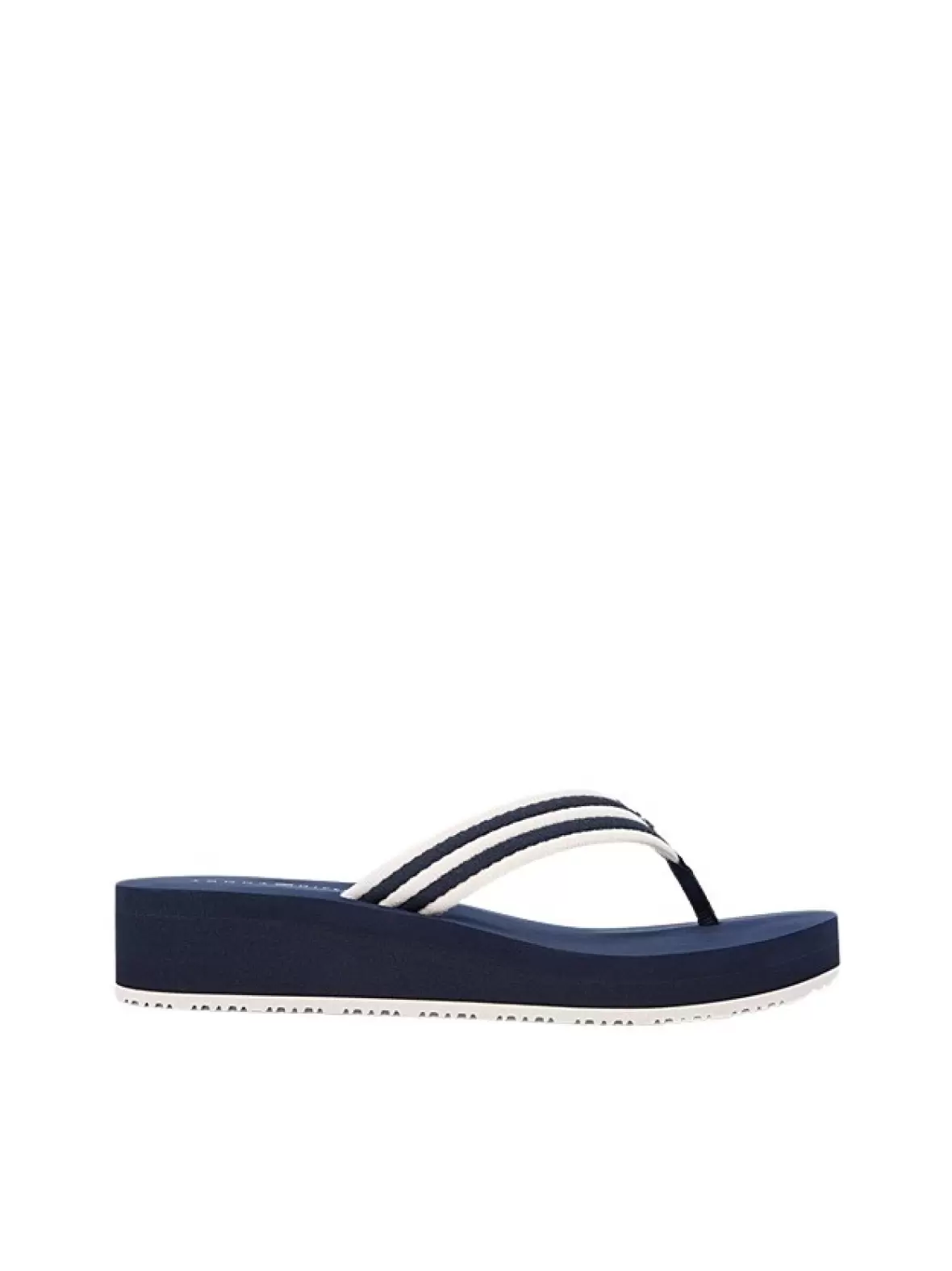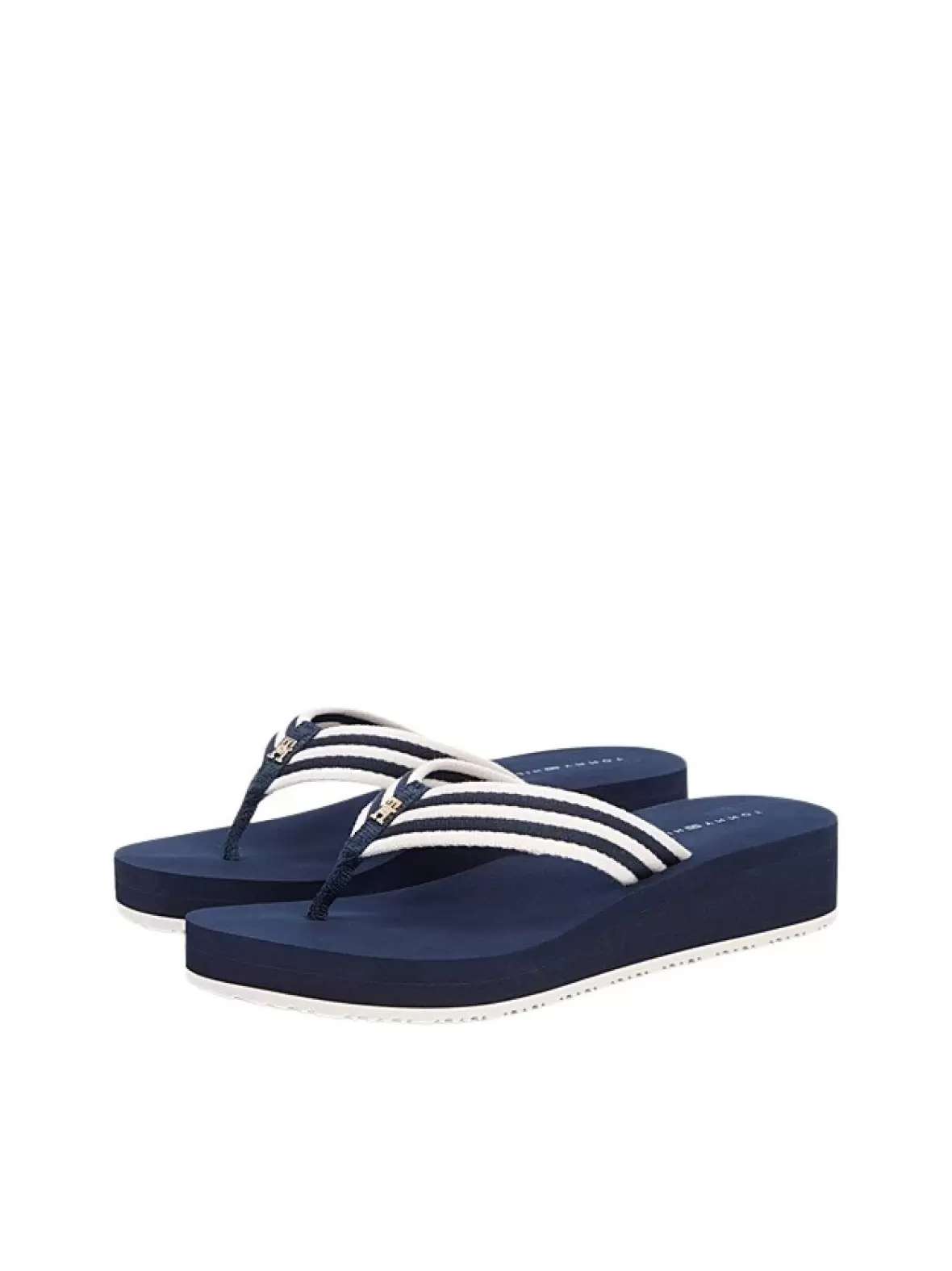 Art. No. FW0FW09196DW6Denne sommer slipper fra Tommy Hilfiger kombinerer et sporty og maritimt look med en feminin silhuet. Den mørkeblå sål sammen med de stribede remme giver et stilrent og klassisk udtryk, der passer perfekt til sommerens afslappede outfits.