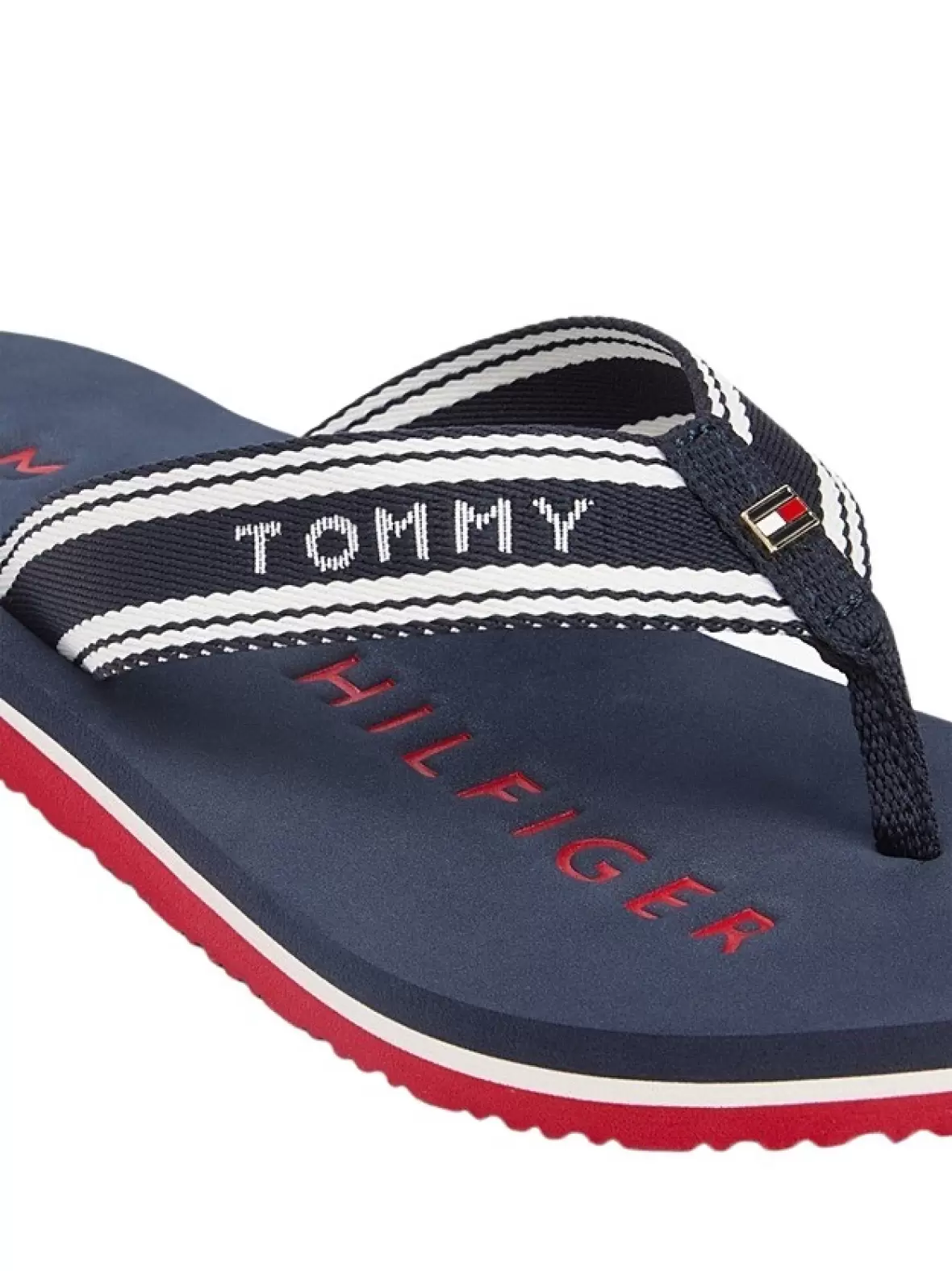 Fodsengen er designet til at give god komfort ved hvert skridt, mens den fleksible ydersål bidrager til en let og ubesværet gang. Farvekombinationen i marineblå, hvid og rød tilfører et maritimt og ikonisk udtryk, der er kendetegnende for Tommy Hilfigers tidløse designunivers. Sandalen er nem at style med alt fra sommerkjoler til shorts og er ideel til både ferier, strandture og afslappet hverdagsbrug.