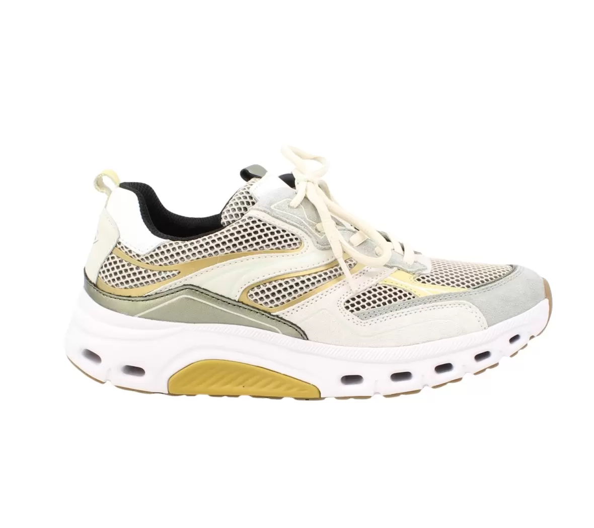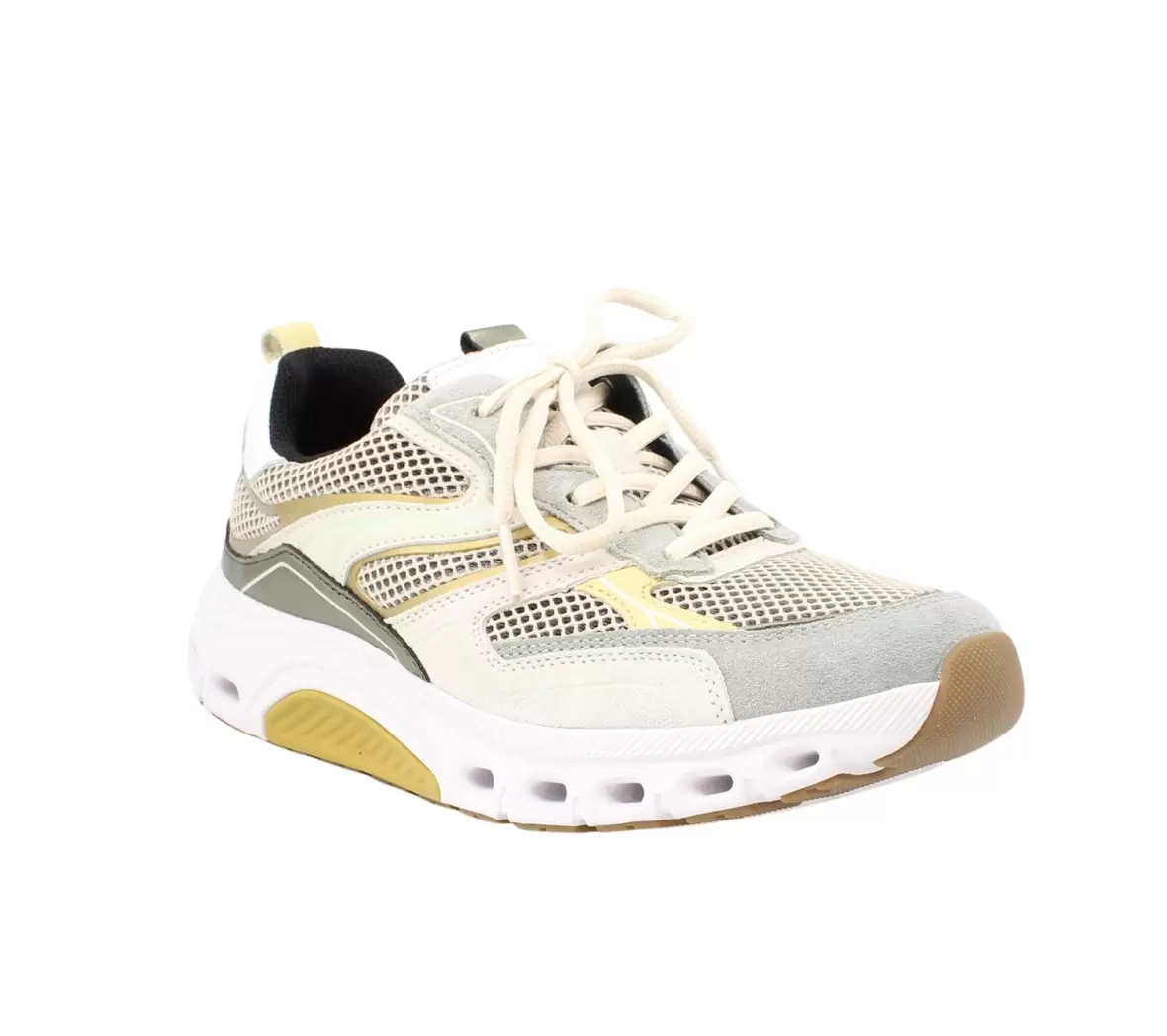 Art. No. 86.986.35Gabor 86.986.35 er en moderne og komfortabel sneaker til kvinder, der kombinerer sporty detaljer med et stilrent udtryk. Skoen er designet i en flot farvekombination af lyse nuancer med fine kontraster i gul og grøn, som giver et friskt og trendy look.