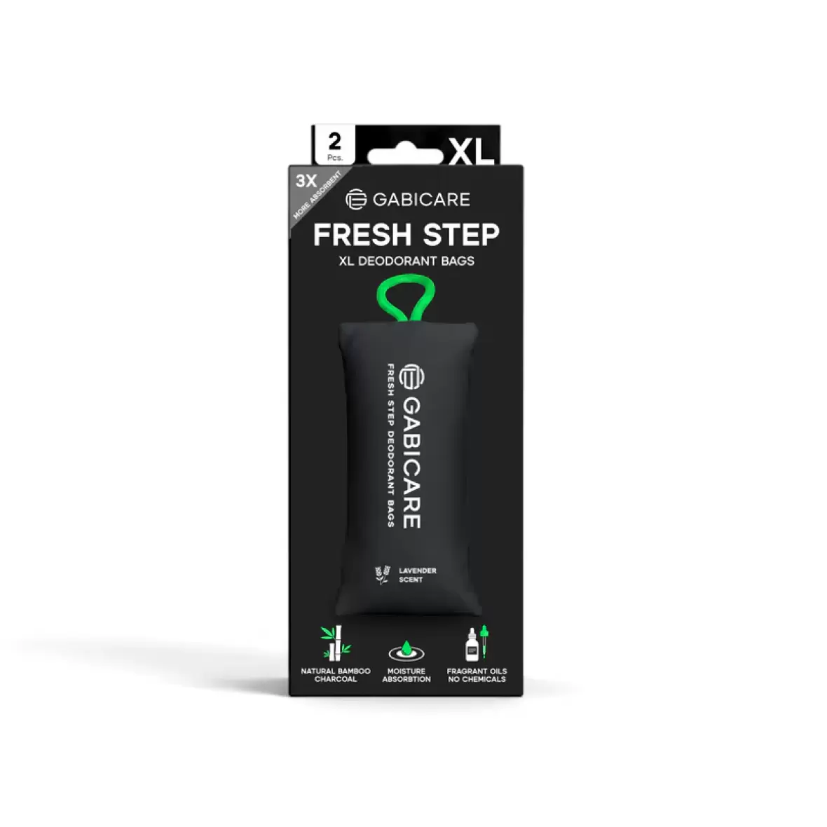 Fresh Step Fugtfjerner poserGabicare Fresh Step XL Deodorant Bags er to bløde og effektive lugtfjernerposer, der hjælper med at holde dine sko, tasker eller skabe friske og fri for dårlig lugt. Poserne er udviklet til at absorbere op til tre gange så meget fugt som almindelige alternativer, hvilket gør dem særligt velegnede til sportssko, støvler og andet fodtøj, hvor fugt ofte samler sig.
