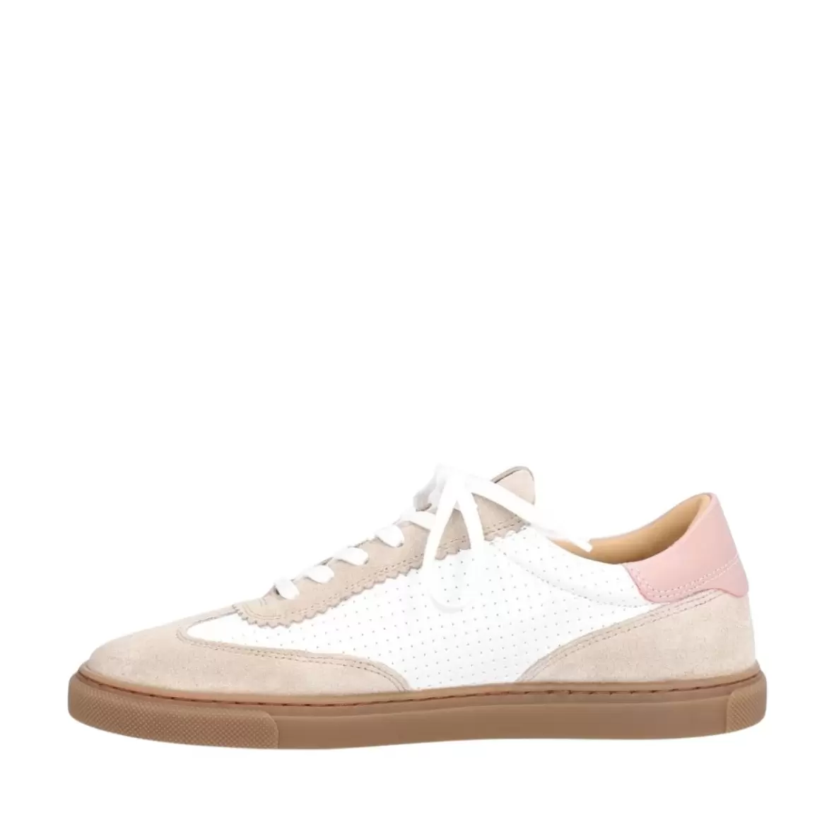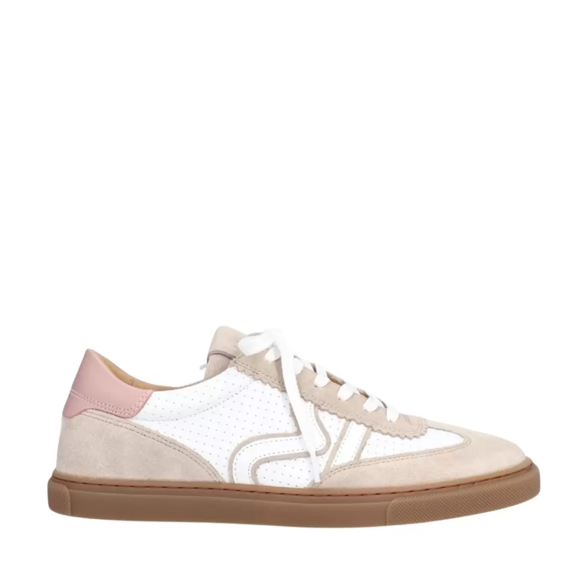 Indvendigt bidrager de bløde materialer til en behagelig pasform, mens den lette konstruktion gør skoen nem at have på hele dagen. Kombinationen af sporty og feminine elementer gør denne sneaker til et alsidigt valg, der nemt kan styles med både jeans, kjoler og afslappede outfits.