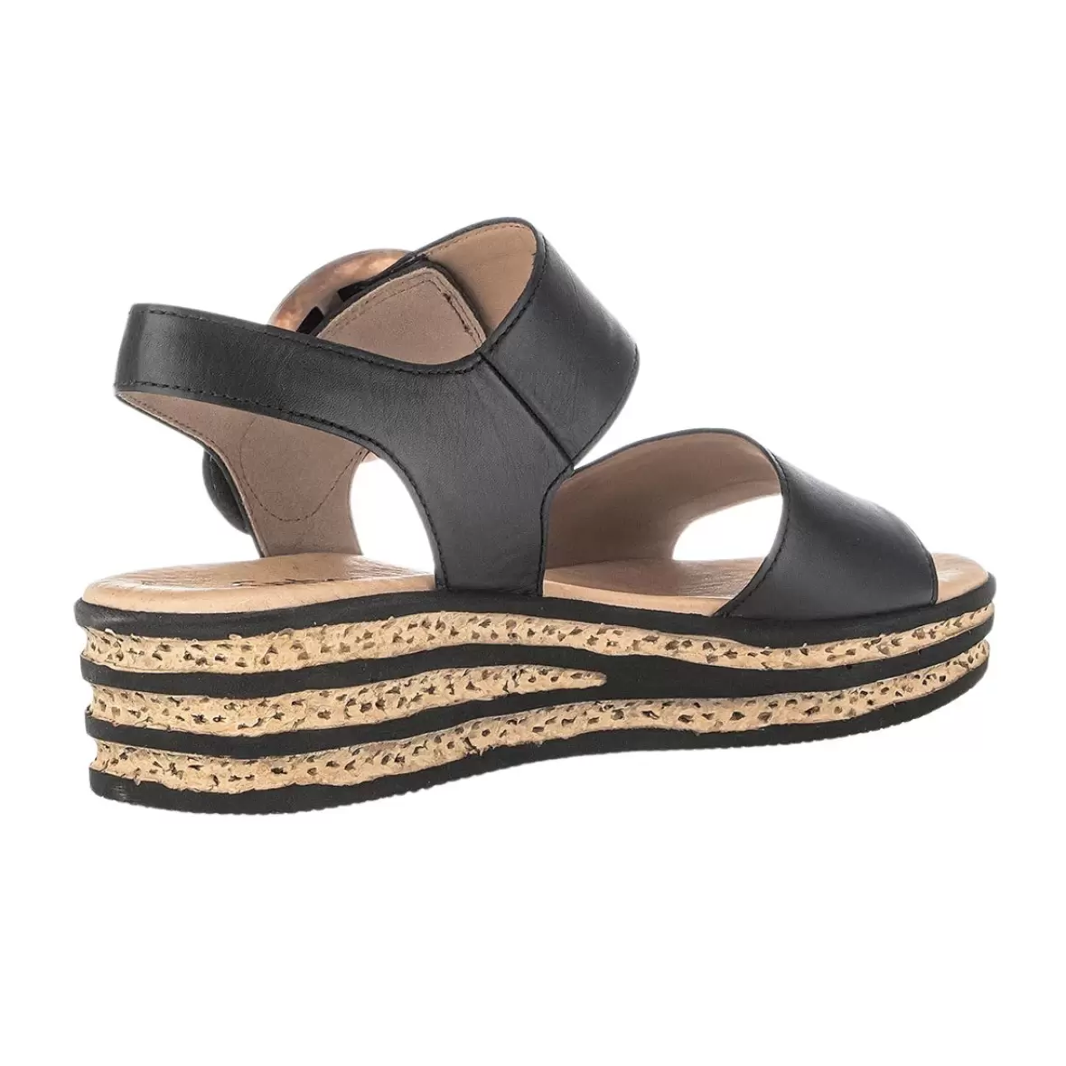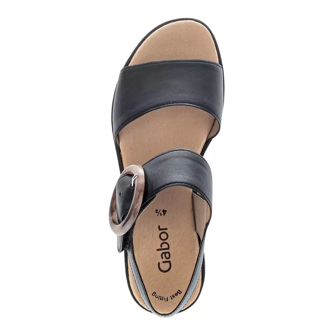 Art. No. 84.550.27Gabor 84.550.27 er en stilren og feminin sandal, der kombinerer komfort med et mere elegant udtryk end de klassiske hverdagssandaler. Den sorte skindoverdel giver et eksklusivt look, mens det store dekorative spænde tilfører et moderne twist, som gør modellen velegnet både til hverdag og pænere sommerbrug.