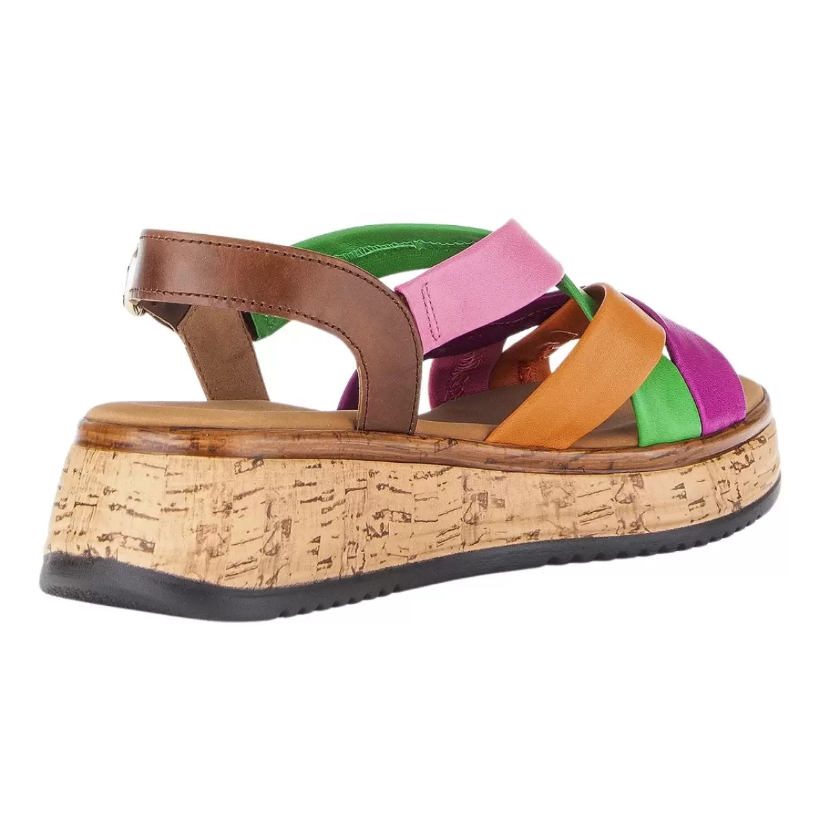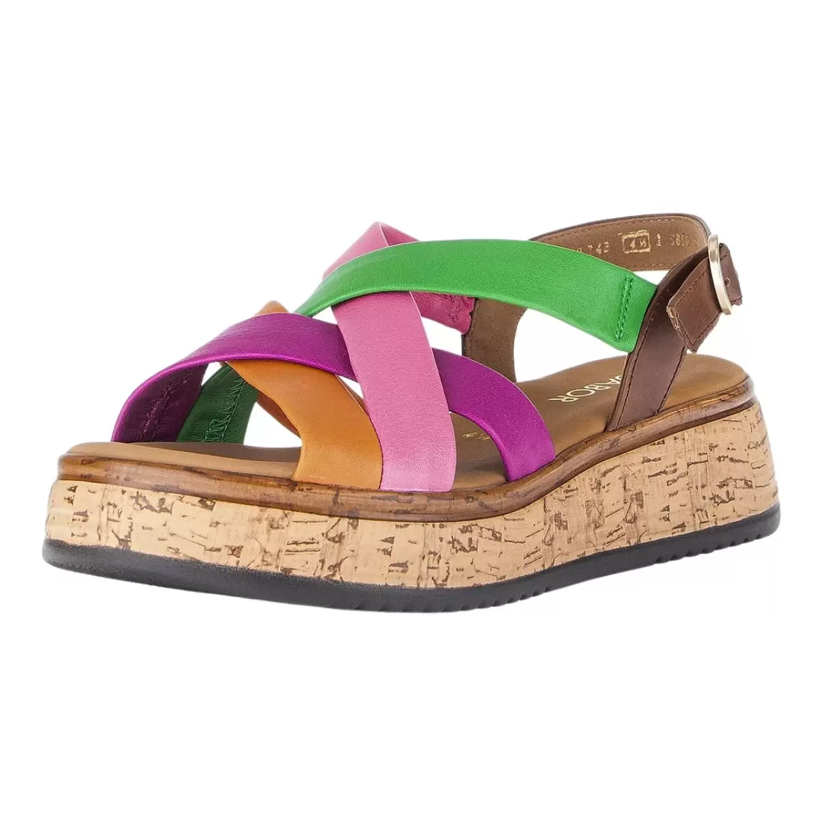 Art. no. 82.743.25Gabor 82.743.25 er en farverig og moderne sandal til damer, der kombinerer komfort med et iøjnefaldende design. De krydsede læderremme i flere klare farver giver sandalen et friskt og sommerligt udtryk, som skiller sig ud og tilfører personlighed til ethvert outfit.