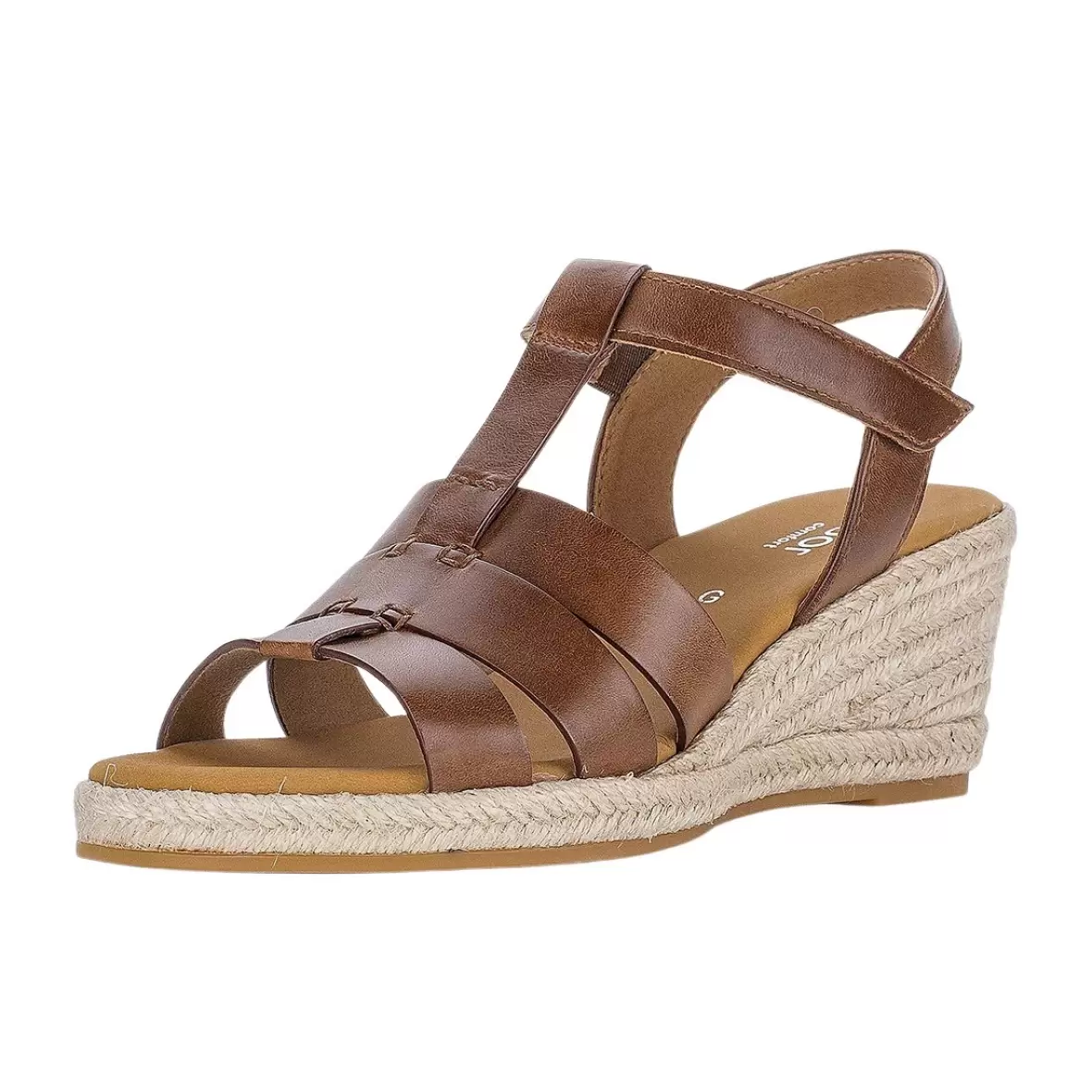Art. No. 82.714.53Gabor 82.714.53 er en elegant damesandal i klassisk brunt skind, der kombinerer et feminint udtryk med høj komfort. Sandalen har et flot design med flere smalle remme over forfoden samt en diskret T-rem, som giver et let og sommerligt look. Den justerbare ankelrem sikrer en god pasform og stabil støtte omkring foden.