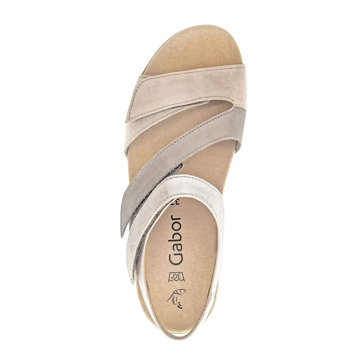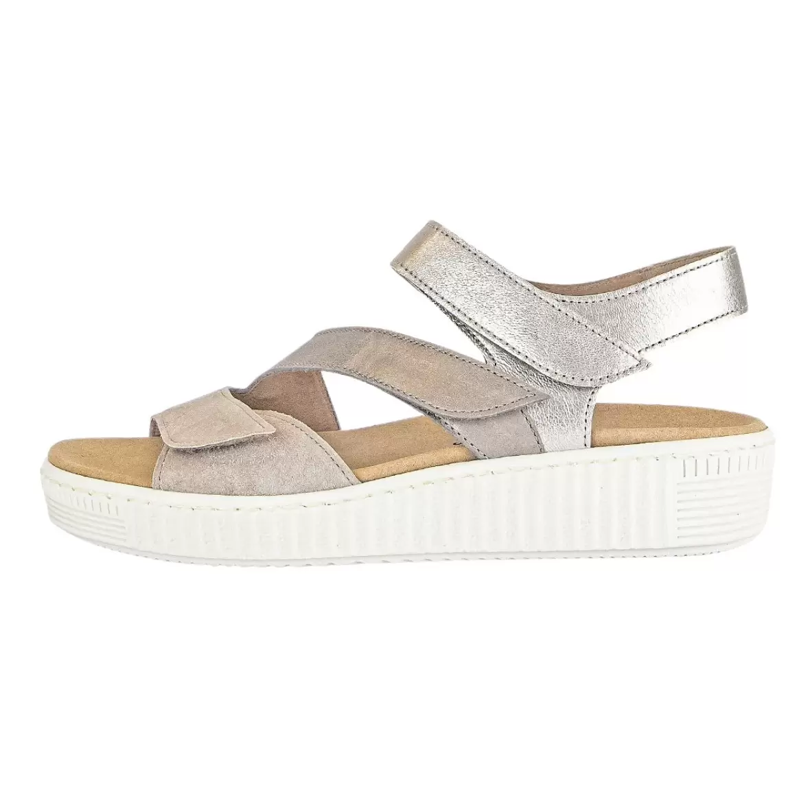 Art. No. 83.600.32Gabor 83.600.32 er en stilfuld og komfortabel damesandal i en lys, metallisk nuance, der giver et elegant og moderne udtryk. Sandalen er fremstillet i blødt skind, som former sig behageligt efter foden og sikrer god åndbarhed gennem hele dagen.