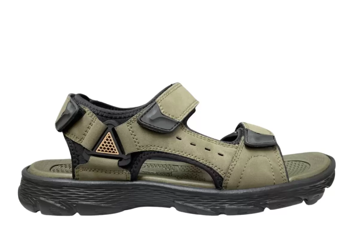 Den robuste ydersål har et groft mønster, der giver et godt greb på både tørre og ujævne underlag, hvilket gør sandalen ideel til vandreture, rejser og aktiv fritid.