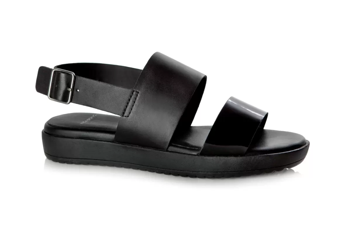 Art. nr.: 3933-301-20 Fed Vagabond sandal i kombineret sort skind og lak. Sandalen åbnes og lukkes på bagremmen. Sålen er lavet af kraftig gummi og har plateau hele vejen.Andre købte også
