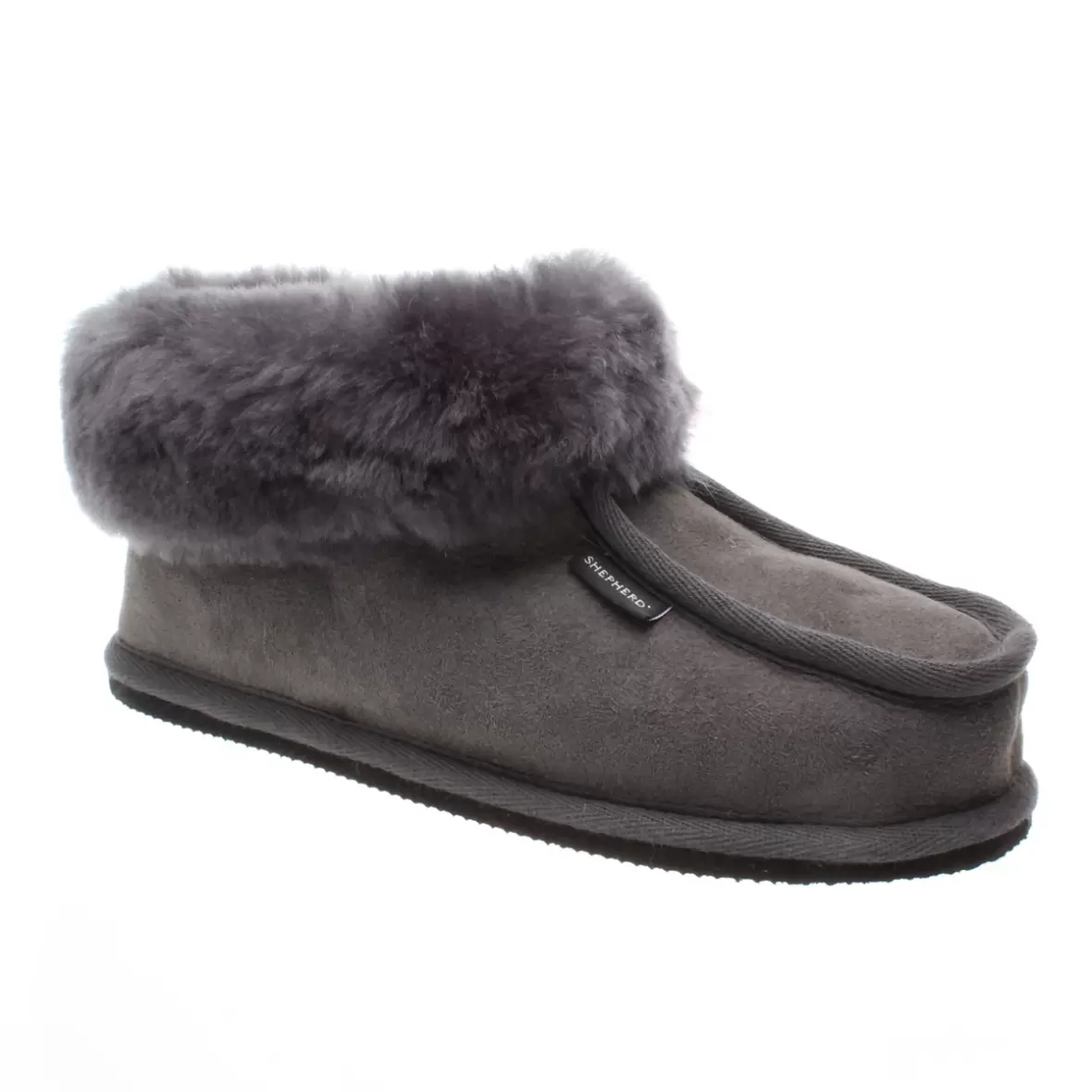 Art. Nr. 472265Varme kamikker fra Shepherd lavet i grå nubuck. Indvendig er hjemmeskoen foret med lammeuld. Sålen er en blød og let skumsål.