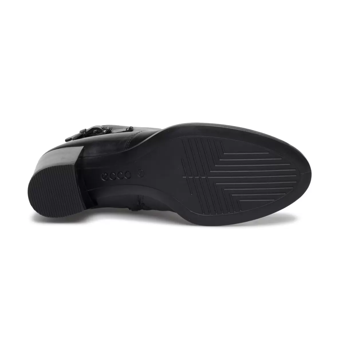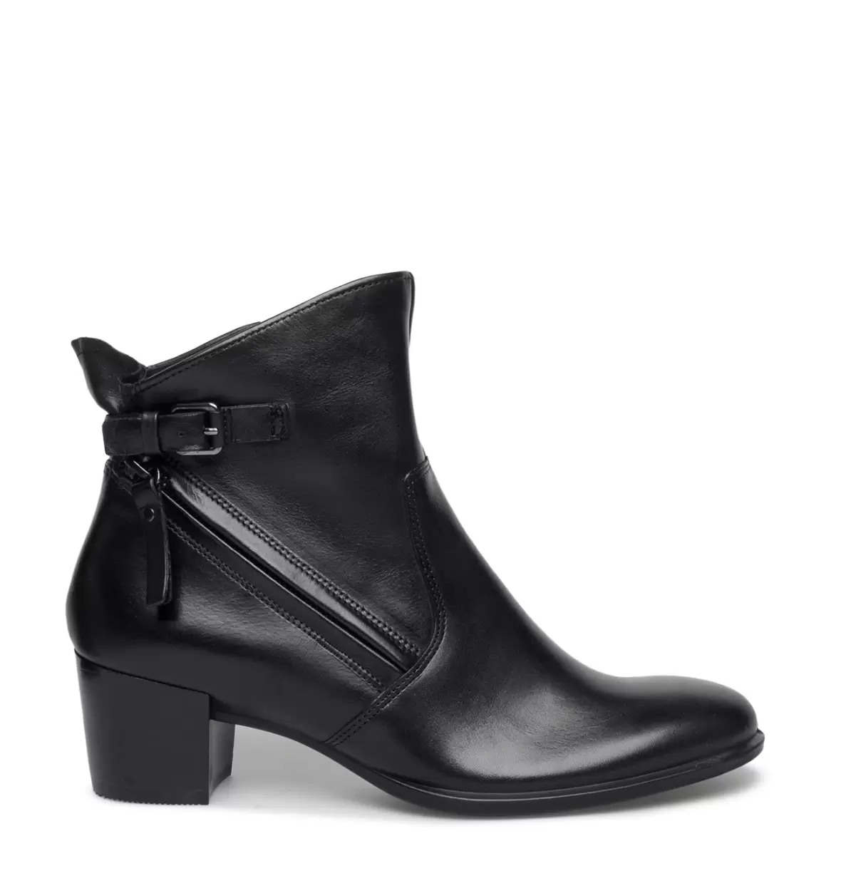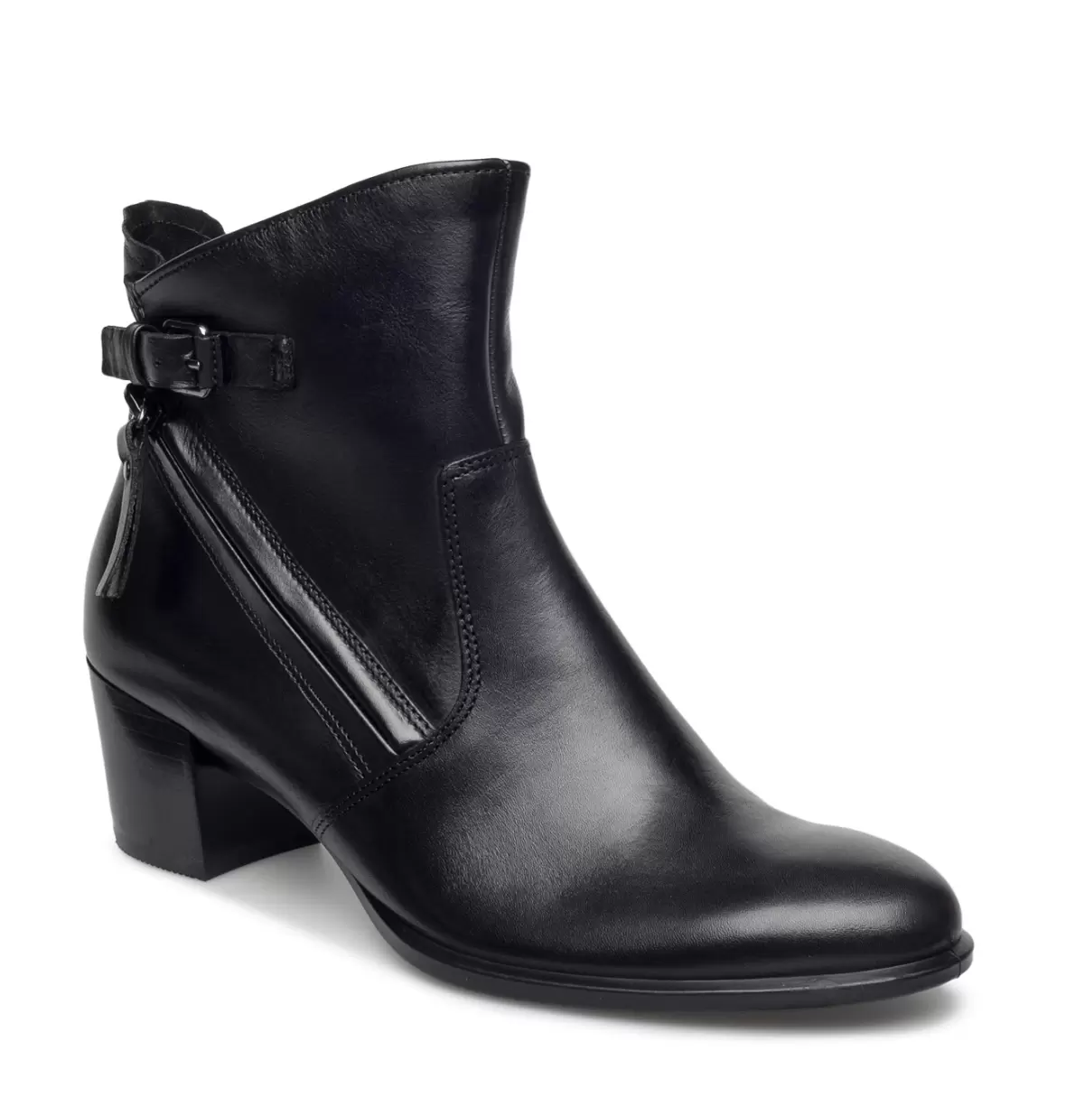 Art. Nr: 267053-01001Flot kort støvle fra Ecco med en 3,5 høj blokhæl og Fleksibel og blød PU sål.