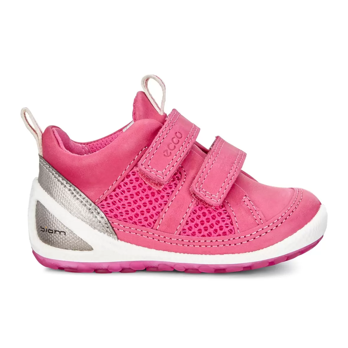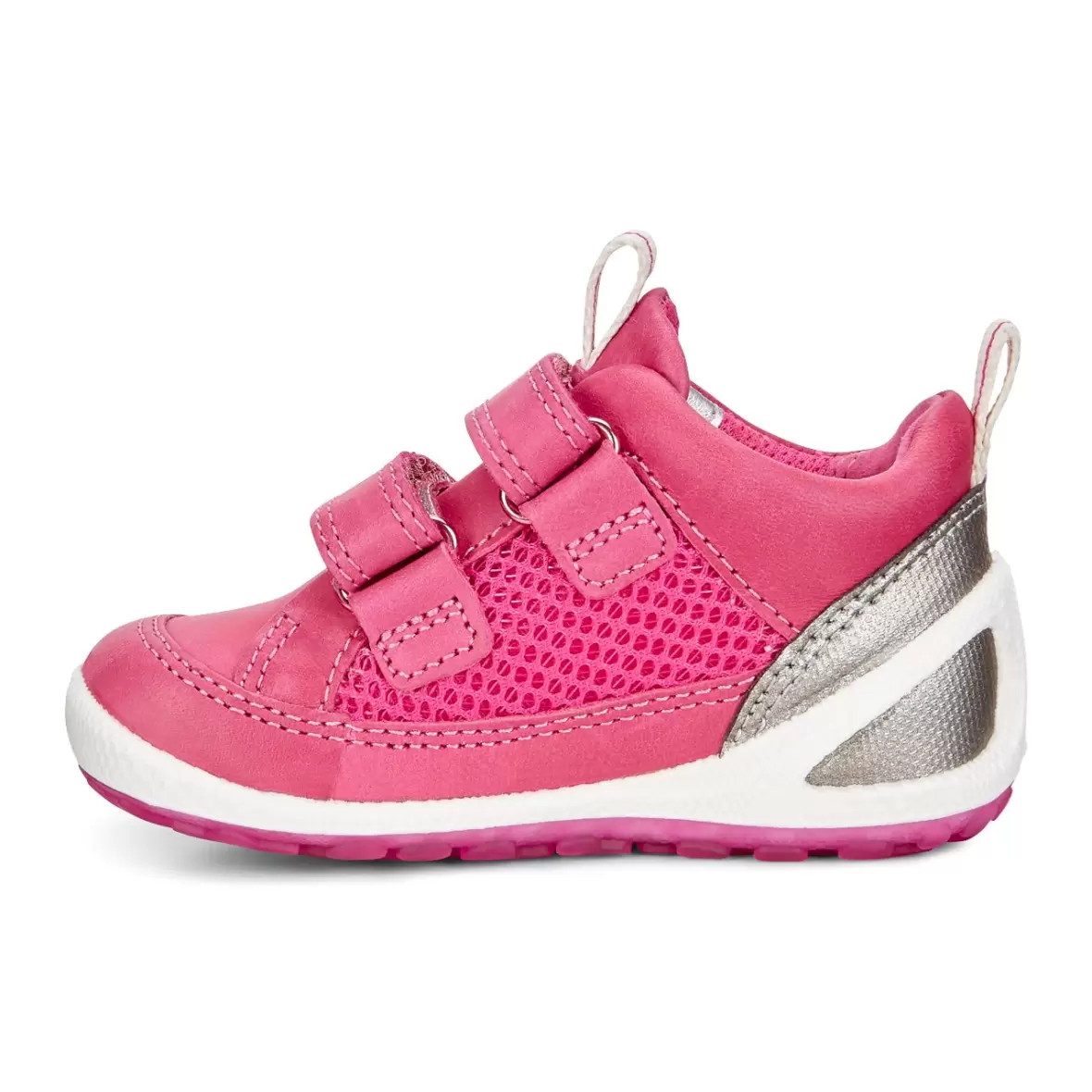 Art. nr. 752751-50292Super sød Ecco Biom lite infants sko til piger lavet i lyserødt skind med sølv detalje på hælen. Skoen reguleres med 2 velcrobånd over foden for perfekt pasform. Dejlig sko der giver barnet en god støtte og samtidig er meget let, så de små har nemt ved at få skoen med sig.