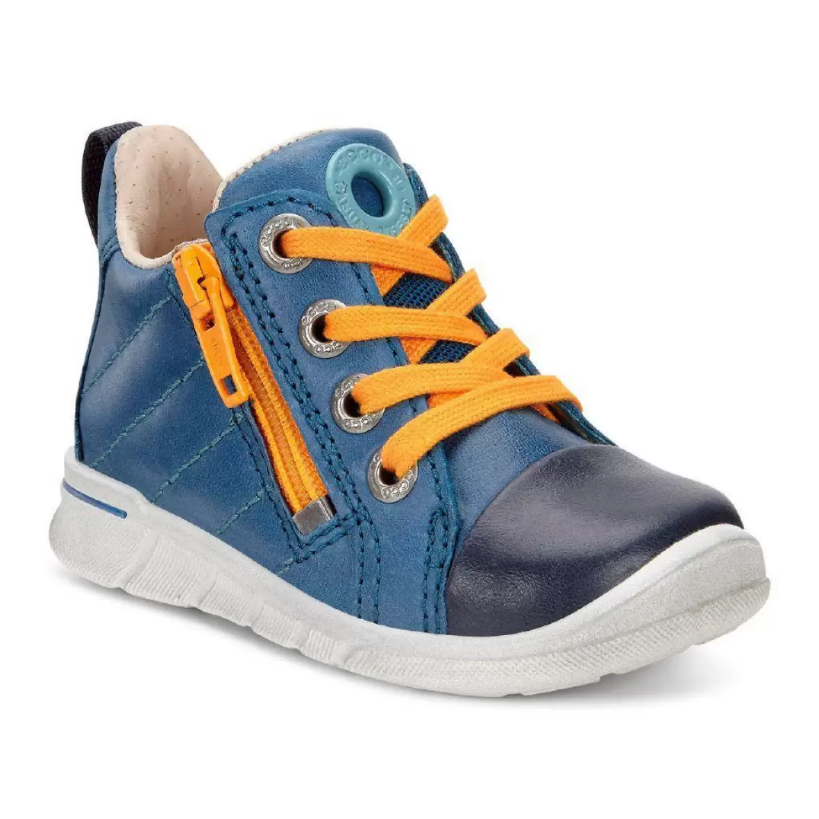 Art. nr. 754041-50278Ecco frist til drenge i blå med et frisk orange snørebånd. På Ydersiden er der ligeledes en orange lynlås, hvilket gør at det er nemt at give barnet skoen på. Super dejlig sko med god støtte og bløde fleksible såler.