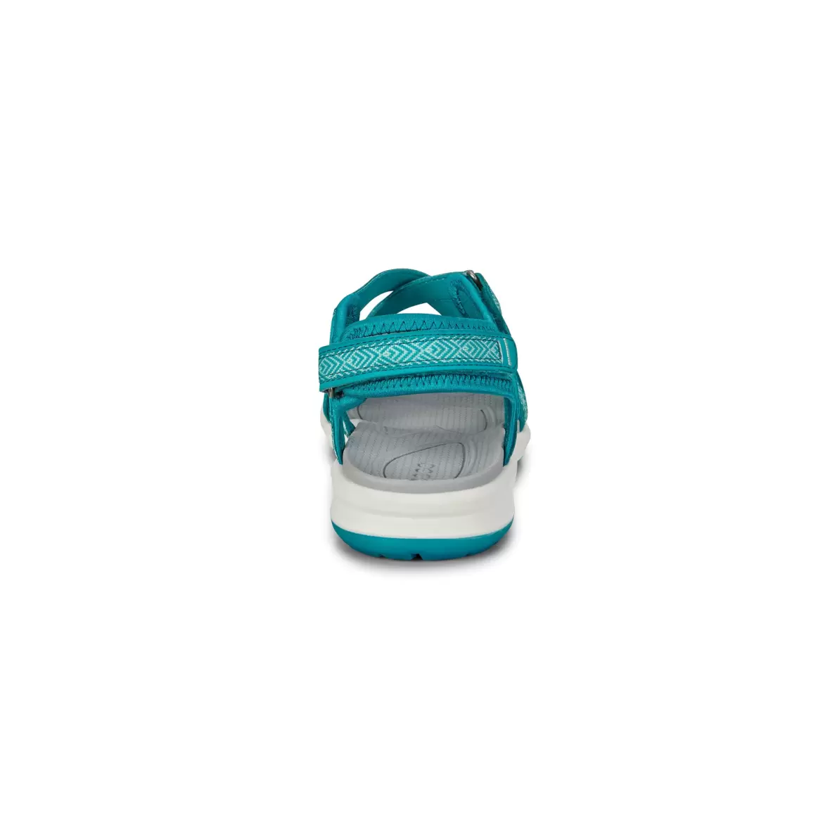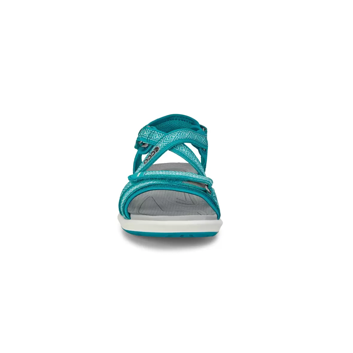 Art. nr. 821853-50890Sporty fritidssandal fra Ecco i serien Cruise II, sandalen er lavet i turkis tekstil med et hvidt mønster på remmene, sandalen er god til den aktive livsstil, den er både let, fleksibel, støddæmpende og den tåler lidt vand.