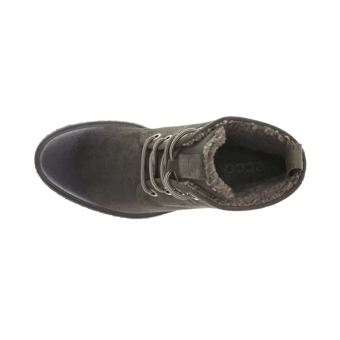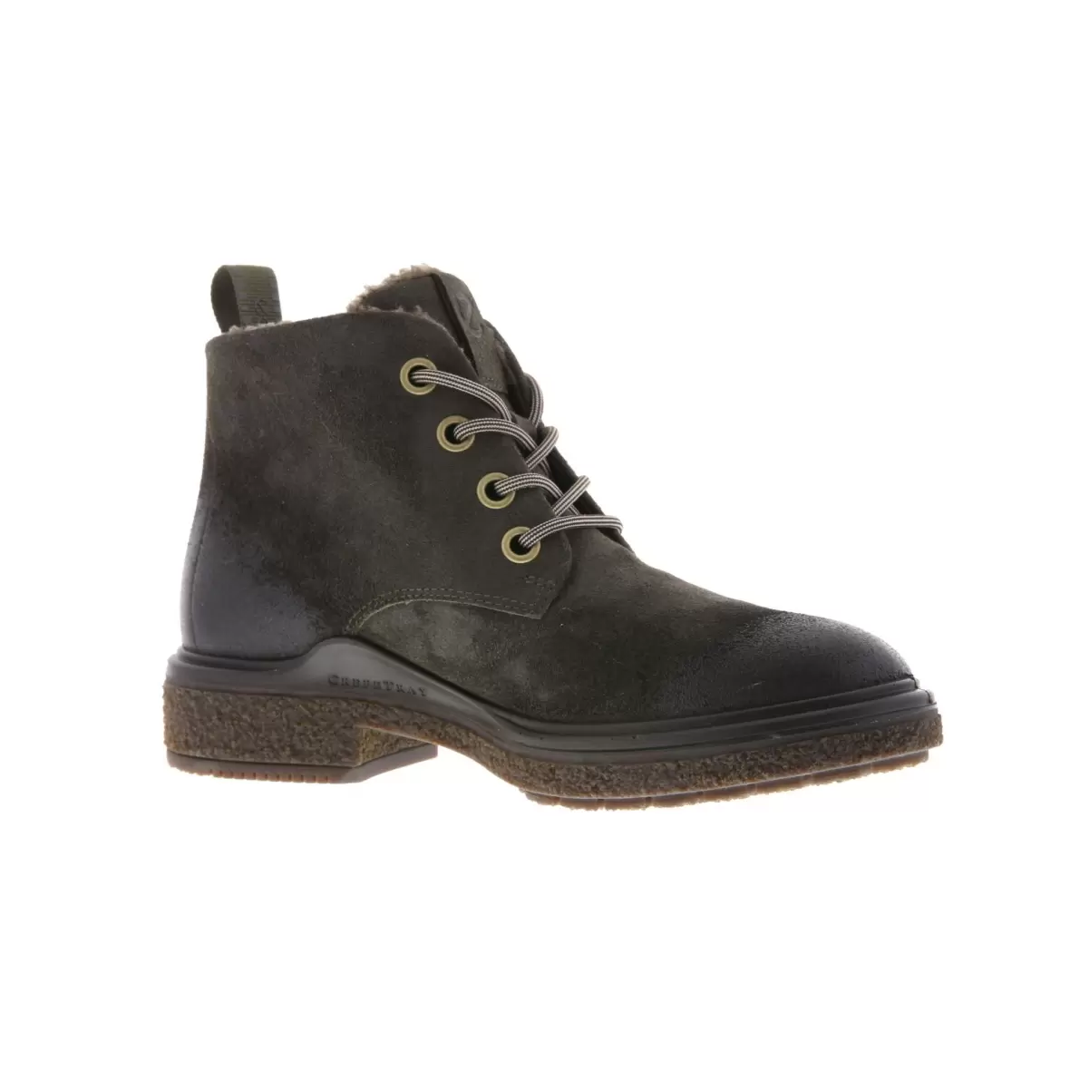 Art. nr. 200863-02543Super fed Ecco støvle med et råt look, overdelen er lavet i olivengrøn ruskind og indvendig er der lunt foer der kan holde foden varm hele dagen. Støvlen har snørebånd der reguleres efter foden og de creppede ydersåler er lavet i pu.