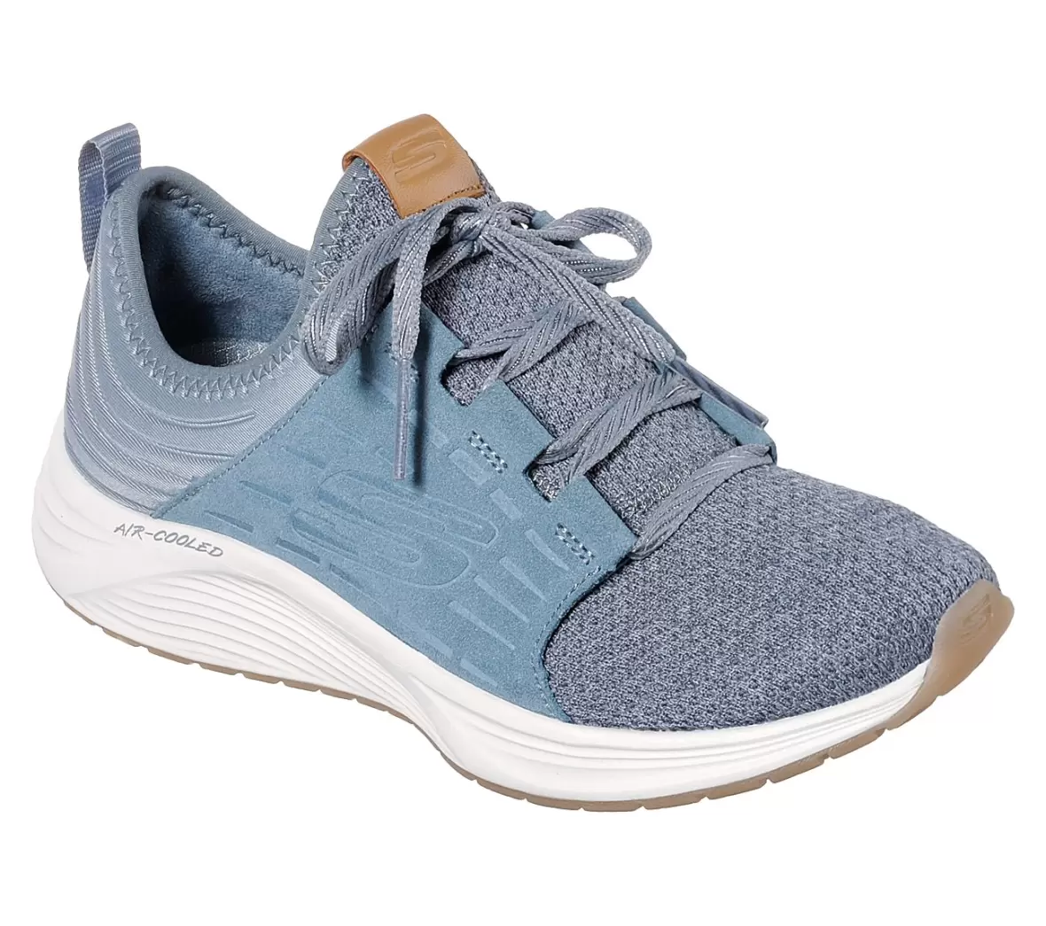Art. nr. 13046 SLTSmart sporty sneakers fra Skechers i en fed blå/grøn farve der er lavet i 1 stykke, så den er super nem at trække på foden, snørebåndet over vristen er mest til pynt, men kan spændes en smule ind til foden. Skoen har en dejlig indlægssål med Air cooled memory foam, hvilket giver en øget komfort til foden sammen med en lette, fleksible og støddæmpende pu ydersål.
