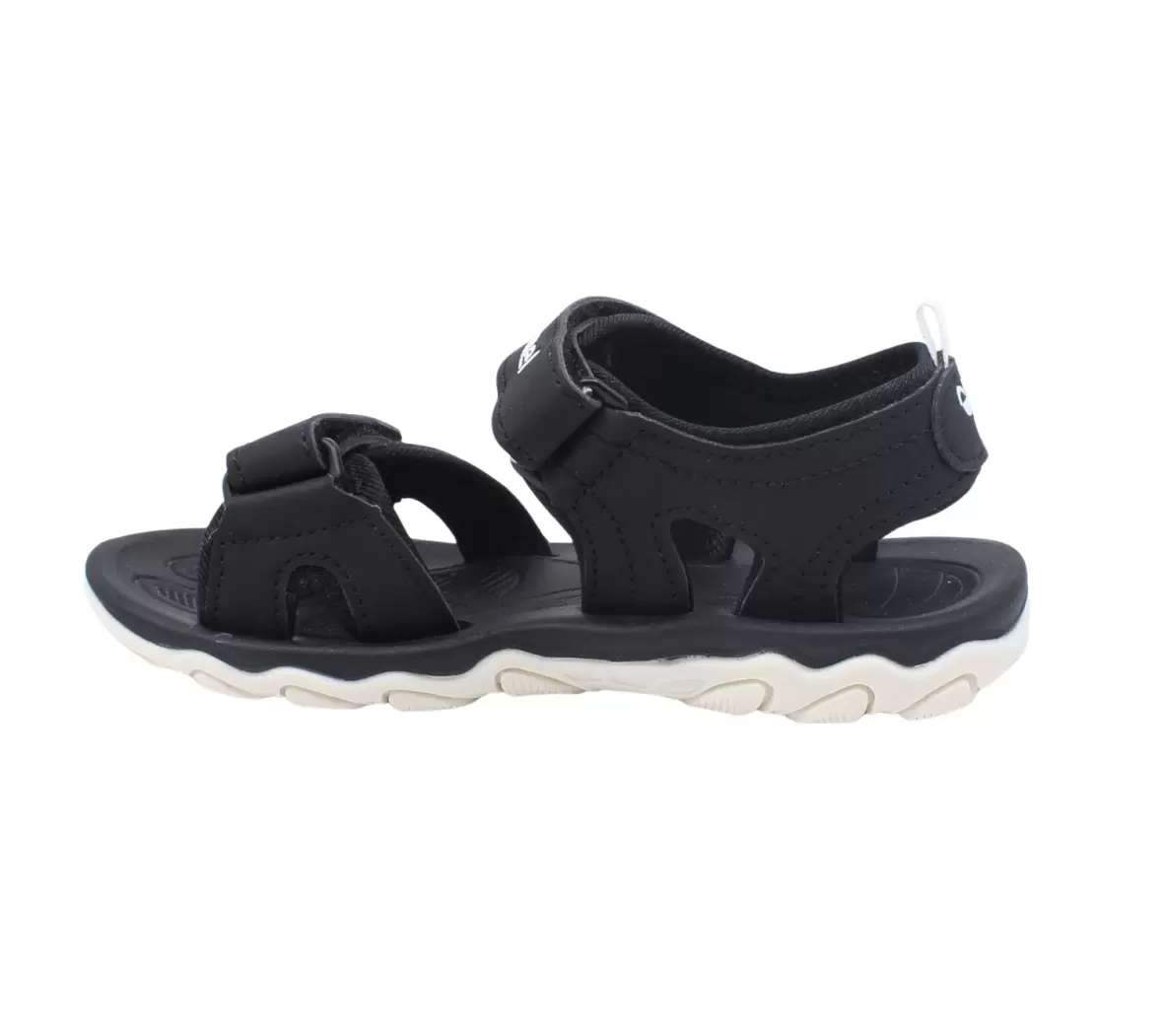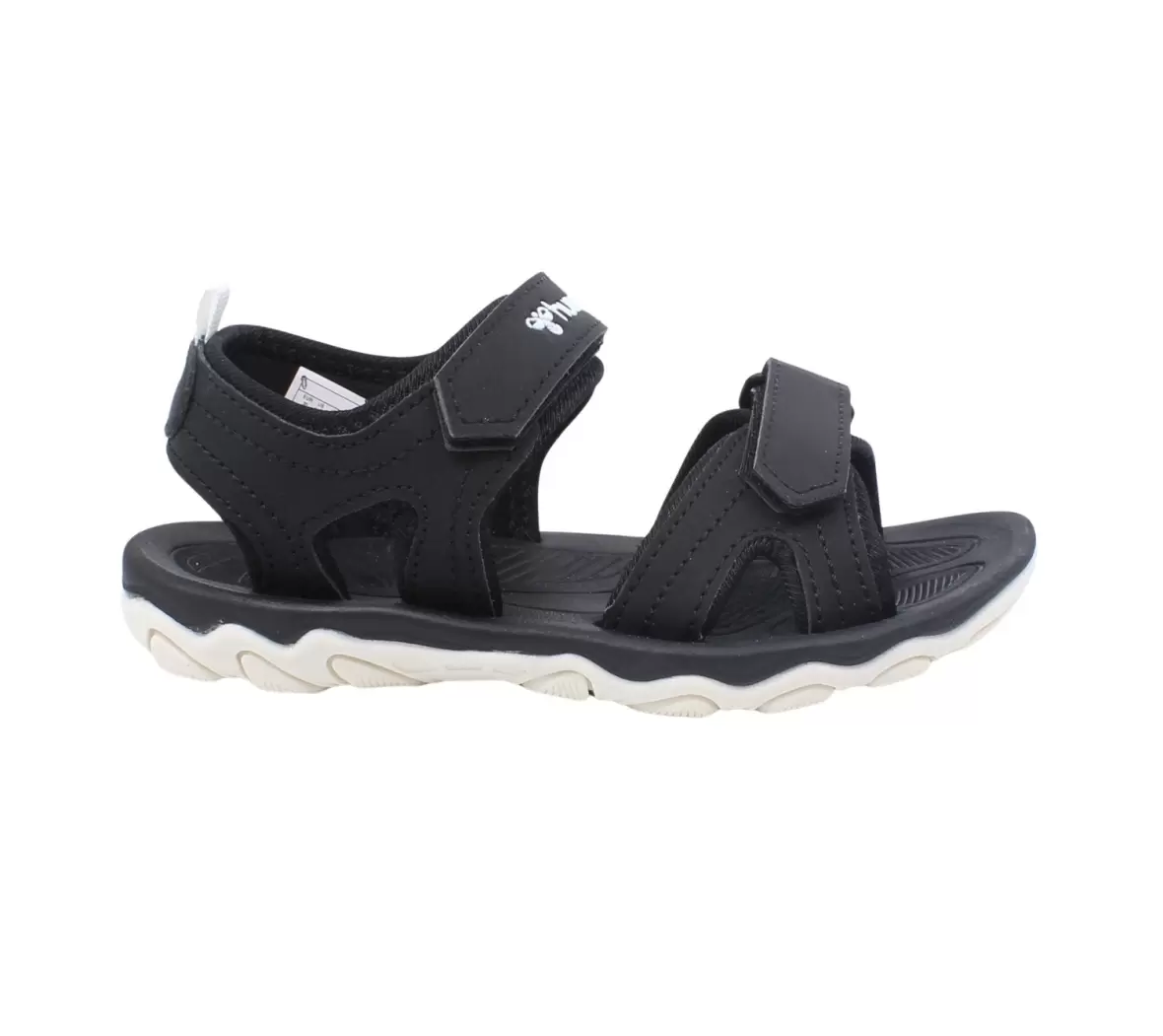 Art. nr. 203304-2001Lækker sporty sandal fra Hummel med en god pasform lavet i sort mikrofiber, den reguleres ind efter foden med 2 velcro remme over vristen for en optimal pasform. Indvendig er den foret med polyester der er hurtigtørrende og blød imod foden. Ydersålen er lavet i gummi der giver en fleksibel gang med et godt greb.