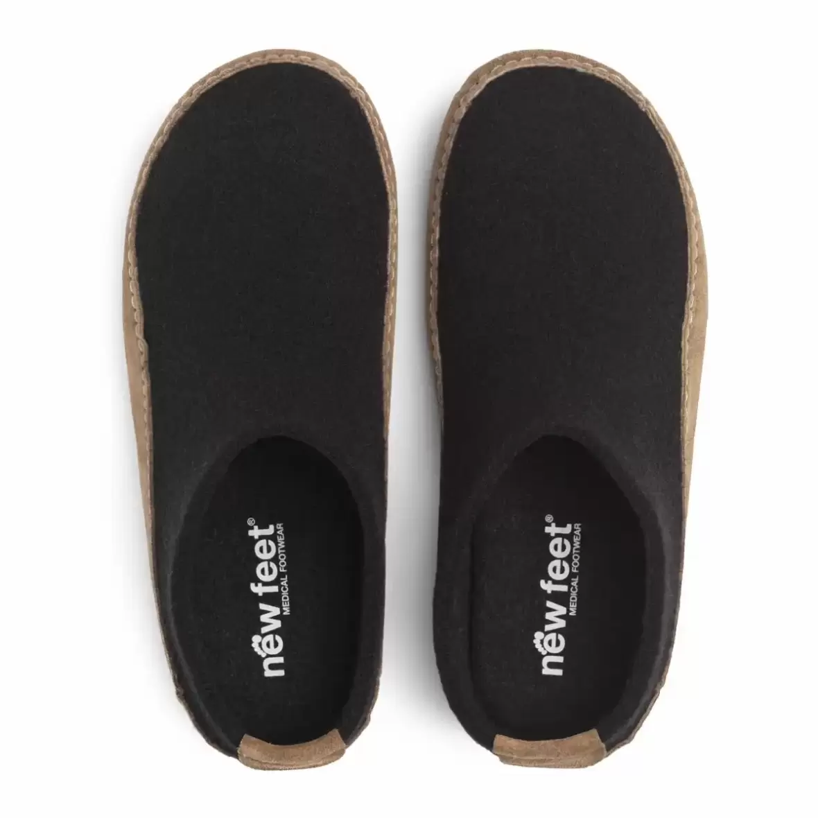 Art. nr. 192-73-910Skøn hjemmesko fra New Feet lavet i filtet uld, den er nem og smutte i og er lavet på en blød skindsål. Indvendig ligger der en 6 mm indlægssål der er støddæmpende, som kan udskiftes til egne indlæg ved behov.